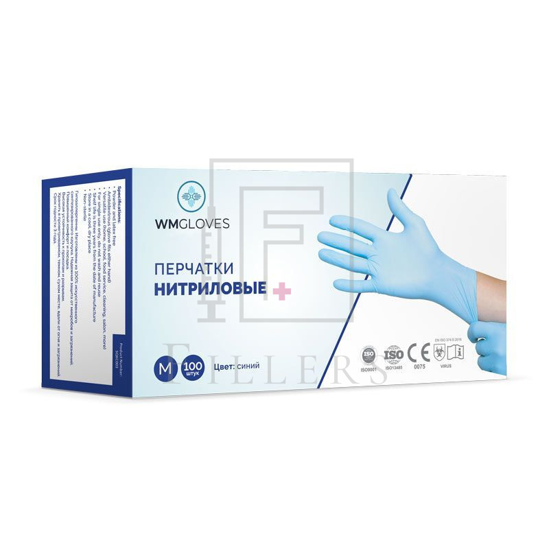 - Перчатки нитриловые медицинские диагностические смотровые одноразовые нестерильные неопудренные "WMGLOVES" текстурированные на пальцах, голубого цвета, неанатомической формы, гипоаллергенны.